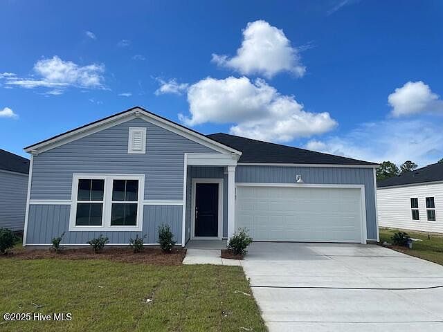 Sunfish Cove in Brunswick County. The Dover home 3 bedrooms/2 baths offer an open kitchen, family room and dining room. Features include 9' ceilings, 36'' white cabinets, granite countertops, stainless appliances, a large pantry, and breakfast bar. The owner's suite offers double vanity, walk-in closet and 5' shower. Sunfish Cove is close to the beach, golfing, shopping, schools, hospital, and restaurants.