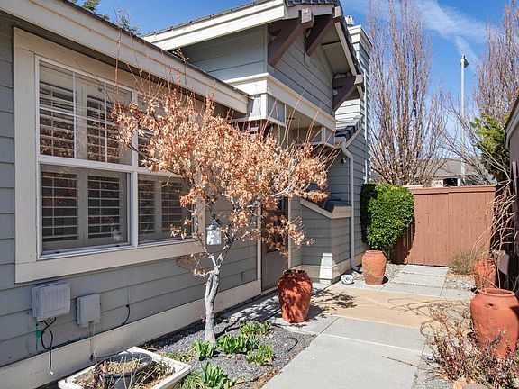 Tucked away in the quiet gated neighborhood of The Meadows Double Diamond. This home is in close proximity to many shopping, dining and recreational options. Double Diamond Elementary School is also just a short walk away. Quick access to 580 and Veterans Pkwy. High ceilings and natural light compliment the main living areas bright and open feel., French doors open up to the dedicated office complete with custom built in shelving. Primary bedroom has sliding barn door to separate bathroom with his and hers sinks and walk in closet with racks and shelving. Generously sized guest bedrooms. Well maintained yards with flower beds getting ready to blossom.