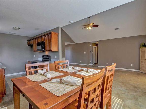 This amazing starter home is big on features includ. video doorbell & keyless entry doorknob! Open floor plan with high vaulted ceilings! Delightful kitchen w/ sunny window, stainless appliances and striking granite counters. Stained concrete flooring = low maintenance cleaning. NEWLY PAINTED Large Mstr bed w/ensuite bath features jetted tub, sep. shower & roomy his/her closets. French doors open to HUGE fenced back yard, a canvas ready for your personal vision. Great schools, USDA/RD Eligible. Come See!