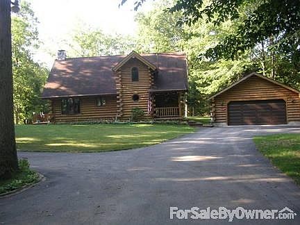 Near Lake Michigan/ 10 miles Ludington/ManisteeAmish built with full pine logs. kitchen with oak cabinets, dinning area, living room with cathedral ceiling. Fireplace insert with full log mantel. Walk out master bedroom with walk thru closet, plus upstairs bedrooms. 1. 5 bathroom with jetted tub.Full basement with walk out facing river, it has 620 sq.ft. living area, plus work shop, walk in pump house. etc. Deck on two sides of house facing river.Laundry room first floor, gas furnace with central air conditioning. 4 inch well with submersible pump. Central vacuuming system. 2.5 full log garage with blacktop driveway. Fishing, hunting, canoeing, wooded area with flower gardens. Upstairs loft 600 sq.ft. Main floor 1200 sq. ft. 3000 total sq ft. On 2.66 acres of woods, county living with view of river on 3 sides of the house. 209.9 feet river frontage. Additional property info: http://www.forsalebyowner.com/listing/3-bed-Log-Cabin-Home-for-sale-by-owner-1167-White-Road-49411/23944189?provider_id=28079