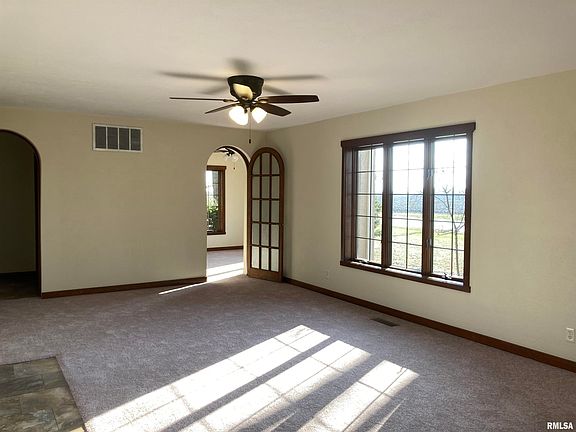 Seize the opportunity to own this unique ranch home on a 2.85-acre wooded lot at the edge of Washington. Step inside and you'll be impressed with new paint and yards of new carpeting. The trim work is awesome! 15 x 25 ft brick patio may be reached from living room French doors or kitchen access. Kitchen features a combo pantry/closet, eating space and ample cabinetry. New easy care vinyl flooring in the kitchen and dining room. Water heater and water softener new in 2022. Oversized garage with cabinets, large storage closet and gas heater. 2 sheds (24x24 and 12x8) provide great storage and workspace. No warranty on appliances. A special home for you and yours!!!