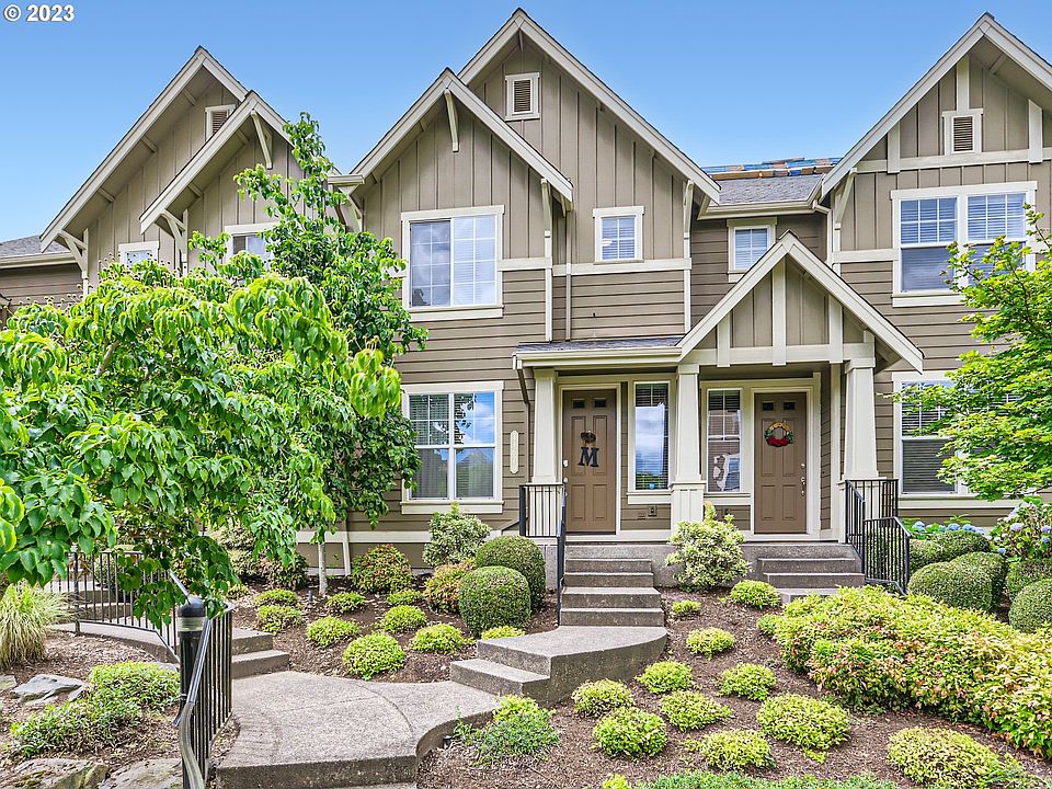 STUNNING REMODELED TOWNHOME! Adorned by a beautifully landscaped courtyard, this modern masterpiece features hardwood floors in the living areas and soothing gray walls that are the perfect backdrop for pops of color. A fabulous kitchen, complete with quartz counters, full tile backsplash, gas stainless steel appliances, pantry and eating bar opens to the dining area and great room as well as a small patio. Dual primary suites can be found on the upper level with the laundry room. You won't want to leave the spacious suite at the front of the home featuring barn doors to the walk-in closet and attached bath. The latter has been improved with a full tile shower, raised dual vanities, undermount sinks, new fixtures, lighting, hardware and tile floors. And don't forget the extra deep tandem garage providing ample storage space, a workbench for projects and additional living space. All this near Murrayhill and Progress Ridge, rich in shops, dining, services and entertainment.