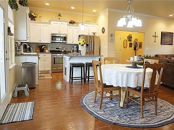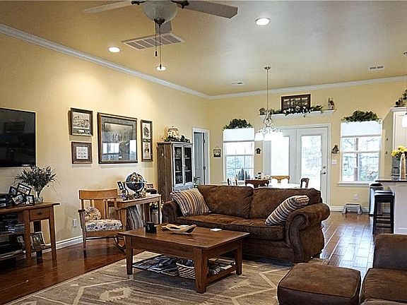 You'll love this clean home. Sitting on approximately 2.5 acres, it is close enough to the city for easy I-35 commute yet far enough away to be country. Huge covered front porch to watch sun rise & large covered Patio to watch it set. Faux wood tile throughout most of home & hallways. Large living & dining open to kitchen w/ island. Kitchen has newer stainless steel appliances, porcelain sink (in excellent condition), granite countertops, grey subway tile as back splash. Walk-in pantry is huge w/ many shelves. Master bedroom is spacious. Master bath has jetted tub and walk in shower. There is more than enough room in deep walk-in master closet. The garage is extra deep & wide to store tools & toys. Quality window treatments & crown molding throughout. Safe room--interior of home. Retainer pond behind home--small & clean. Drive way w/additional concreted area for small RV or 3rd vehicle. New metal workshop--15X25 w/ electric. Freshly painted steel fence on Pine. Come see this one!