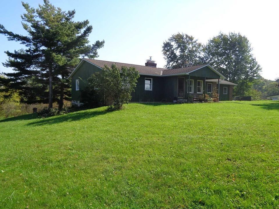 Hillside Ranch w/walkout basement on 5.9 +/- ac. Mature trees and meandering creek. 4 bedrooms, 2 full baths, galley style kitchen, dining area with sliding glass doors to large deck overlooking the property, living room with fireplace that has wood burner insert. Owner's suite has private bath with walk-in closet. First floor laundry. Lower level is partially finished with family room, additional bedroom, brick fireplace open in both the family room and bedroom. Large concrete patio off the rear of the home. Two car attached garage. The home has deferred maintenance and will need some TLC. The home has fuel oil heat, on-site well and septic. Northridge Schools. Annual taxes are $2,986. Living area of home is 1600 sq. ft. Auction date: Nov. 15 at 6:00 p.m.