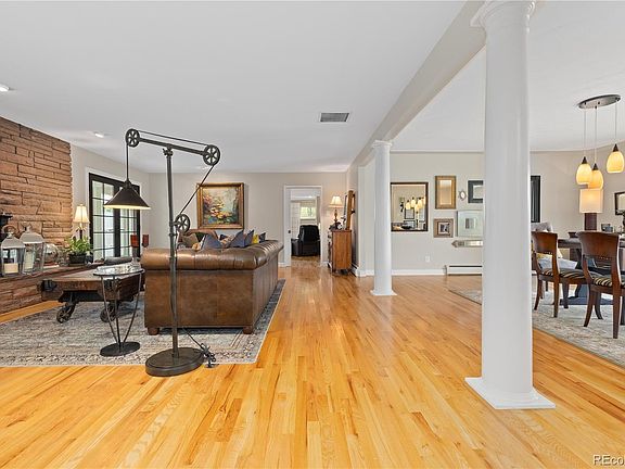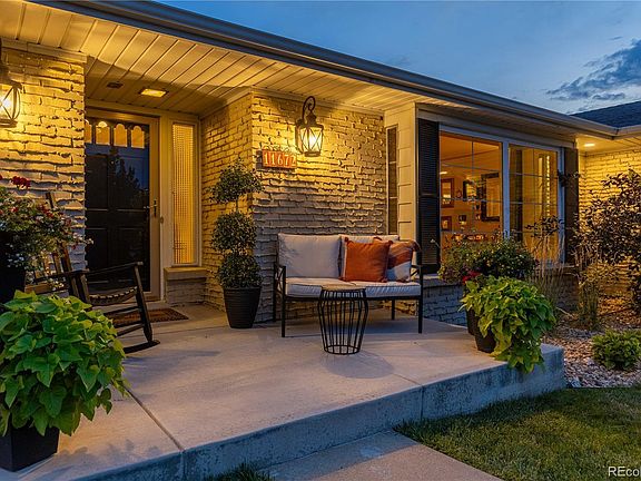 Beautifully updated brick ranch in the desirable Applewood community of Lakewood. This rare corner-lot home is surrounded by gorgeous landscaping, blooming flowers, and a welcoming front porch that creates stunning curb appeal. Multiple outdoor living spaces include a brand-new deck, new patios, a private landscaped yard with mature trees and sprinklers, and a built-in grill in the enclosed sunroom, perfect for year-round enjoyment. Inside, the spacious and open floor plan is enhanced with high-end finishes and quality craftsmanship. The grand layout unites the living room, formal dining room, and eat-in kitchen, all tied together by gleaming new hardwood floors. A cozy fireplace with a timeless floor-to-ceiling stone surround creates the perfect gathering space. The chef’s kitchen boasts a 5-burner gas cooktop with chic overhead hood, Corian countertops, a pretty tile backsplash, and a charming dining nook. Dual French doors open to the sunroom, complete with roller shade blinds. The main level also features a family room and two bedrooms on one side of the home with a private entrance off the sunroom, offering a wonderful option for an in-law or multi-generational suite. The private backyard is a true oasis, filled with lush landscaping, mature trees, and multiple patios designed for entertaining or relaxation. A finished bonus room in the basement provides additional flexibility for work or play. Recent upgrades include a new boiler and heating system, new tile, a swamp cooler, concrete patios, and more. Move-in ready, this gem offers comfort, beauty, and functionality inside and out. Welcome home!