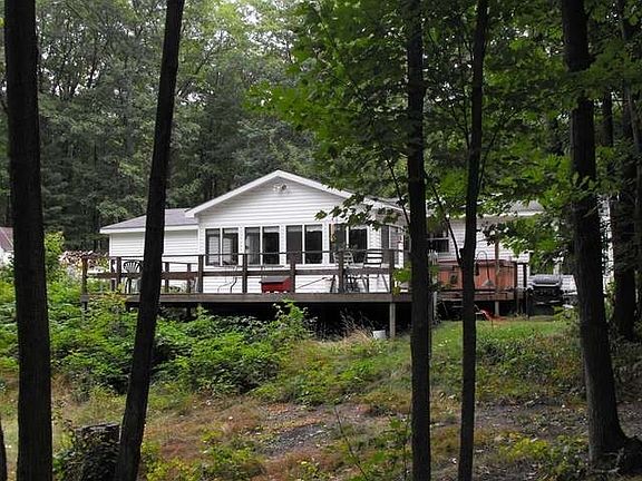 Large home in the middle of wilderness!!! This property is perfect for someone that wants Peace & Quiet!!!! Features 10+ BEAUTIFUL wooded acres, new roof, 2+ garage, deck, 3 bdr. 2 full bth, living area w/wood stove, separate dining area, large kitchen, den/office, separate laundry/pantry area, gorgeous sun room added on with a breath taking view of the property.