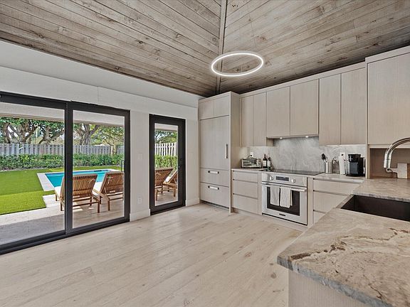 This exquisitely renovated and furnished bungalow is now available in Palm Beach Polo.There are designer touches throughout, to include a masterfully designed kitchen, pecky cypress vaulted ceilings, custom closets and more.The thoughtful design capitalizes on the indoor/outdoor feel everyone looks for in the Florida winters. The front courtyard has a spacious pool with a pergola and tv. The garage has been converted to act as either the 3rd bedroom or pool house and has an en suite bath. A secondary patio allows for beautifully serene water views and ample relaxing space.