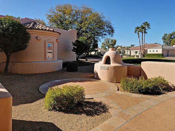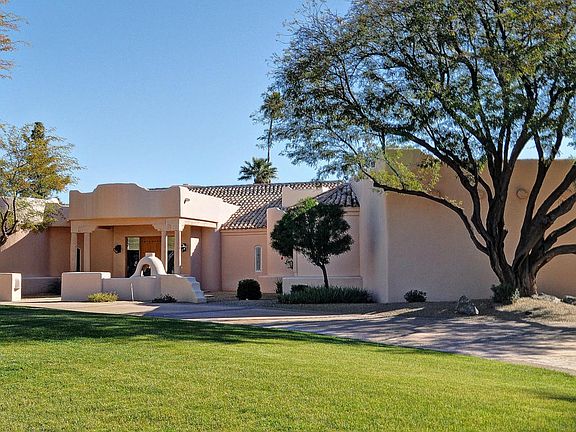 Located on one of the finest golf course lots in the highly desirable guard gated community of Scottsdale Country Club this beautiful custom territorial home has so much to offer. The curb appeal is fantastic with a large front lawn private circular drive golf course backdrop outdoor fireplace at entry and regal mature trees throughout the grounds. As you enter the home you are greeted with an open light and bright split floor plan with soaring wood beam accented ceilings gas fireplaces in the family room and living room real wood floors grand windows framing the 7th Green of the Starfire Golf Course granite kitchen countertops a grand Master Bathroom with enormous soothing Jacuzzi tub and multiple walk in closets and so so much more! Welcome Home!