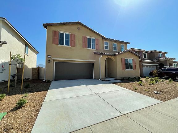 Gorgeous four bedroom, three bathroom home in Corona! This home is a new build with luxury hard surface vinyl plank flooring throughout. The kitchen has beautiful quartz countertops, an ample amount of cabinet space, large pantry, and matching stainless steel appliances. Appliances included are a dishwasher and range/oven. One bedroom is located on the main floor as well as a full bathroom. Upstairs you will have a large open loft. The primary bedroom is very spacious with amazing mountain views! Attached to the primary bedroom is the primary bathroom that includes dual vanity sinks, standing shower, water closet, and a large walk in closet! Upstairs laundry with additional storage. Additional features include solar, automatic exterior lighting, recessed lighting throughout home, unobscured view from back of home, soft close drawers and much more. In close proximity to multiple parks, schools and the 15 freeway!