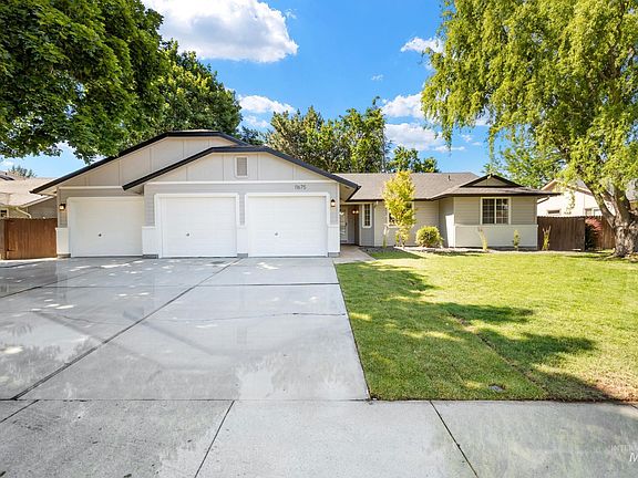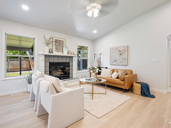 Beautifully renovated home in Boise with so many amenities! Single level, 3 car garage, and vaulted ceilings with no HOA. New cabinets, new floors, new paint and more, this home is ready to move in today. The great room has a showstopper kitchen, plenty of dining space, and a gas or woodburning fireplace perfect for entertaining, while the adjacent bonus room has a gorgeous bay window that fills the room with natural light. The kitchen has a magnificent center island and walk-in pantry that overlooks the beautiful backyard with brand new sod, mature shade trees, a large shed with power, and a covered patio for relaxing summer nights. Garage features tons of shop lighting, a built-in air compressor, and a gas heater. Only a short walk to DeMeyer Park which has 12 acres of green space, a duck pond and a fun play area. Have a house you can love for years to come only minutes to The Village and less than 20 minutes to downtown Boise. Vacant and staged for you to see this wonderful home anytime.