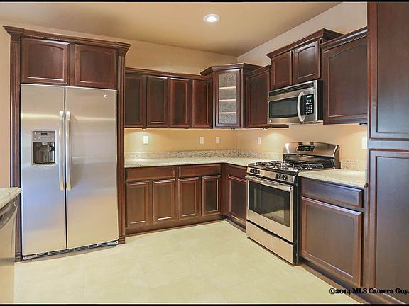 Live in luxury with this gorgeous home. Home opens up to a grand foyer with a cathedral ceiling and lighthouse effect windows. Lavish kitchen with dark wood cabinets have plenty of space for all your kitchen needs. The kitchen includes granite countertops with a breakfast bar and is equipped with a stainless steel package including the dishwasher, garbage disposal, refrigerator and stove/oven. The kitchen is open to a spacious family area with fireplace and dining space. Big master bedroom with dark wood vanity including double sinks, walk-in shower and garden tub. Elegant fixtures throughout gives this home a luxurious feel. 3 carpeted bedrooms, 2 bathrooms, laundry room and double car garage.