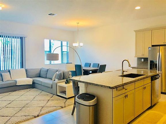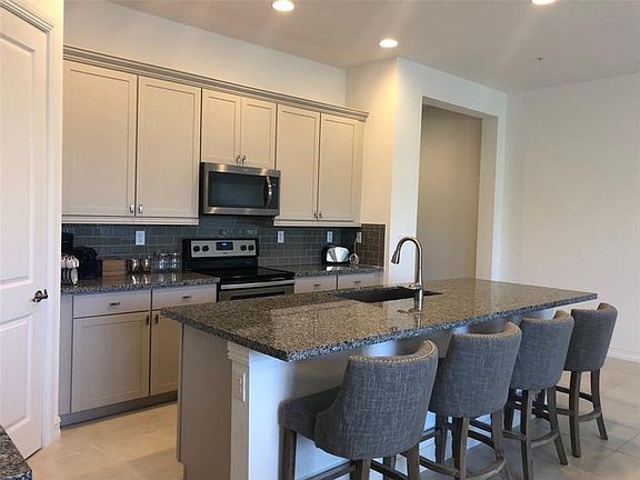 Exceptional townhome with plenty of attractive upgrades. Spacious kitchen with granite countertops, stainless steel appliances, a cooking isle & large pantry. Powder room with extra storage space below stairs. Upstairs, the carpeted master bedroom has twin walk-in closets and a balcony overlooking the lake. Both bathrooms have double basins. Laundry room is conveniently located upstairs. This home is like new. Used only occasionally by owner who lives in North Florida. Community has a large heated pool, gym, clubhouse and children's play area.