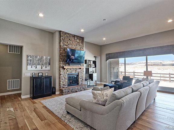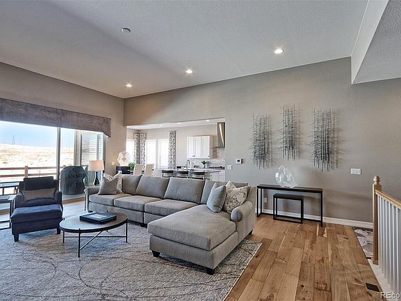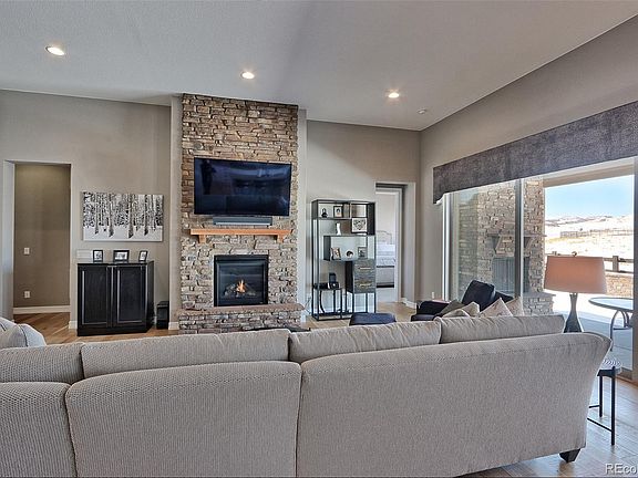 This stunning ranch home in Heirloom shows like a model and backs to open space. Many upgrades throughout including cabinets, lighting, flooring, electric blinds and plantation shutters. The open floor plan features a great room with 12' ceiling and beautiful fireplace. The gourmet kitchen has double ovens, an oversized island and an eating nook. The covered patio extends the living space with an exterior fireplace overlooking a private putting green and backs to spectacular western views and sunsets. The master suite has a five piece bathroom with a large shower and walk-in closet. The main floor also has two additional bedrooms, a 3/4 bath, a 1/2 bath and large laundry room. The home is Energy Star Certified and HERS rated! Heirloom amenities include: community pool and clubhouse, open space, and recreational areas. Easy access to Lone Tree, Park Meadows, the Denver Tech Center, and the town of Parker. Plan to see it today!