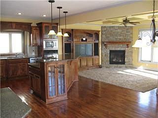OUTSTANDING 2-STORY with Awesome Floor Plan has Kitchen/ Hearth Room with Entertainment Center(staying), Large Island/Breakfast Bar, Granite Counters, Walk-in Pantry, Hardwoods, SS Appliances, and Breakfast Area. Exquisite Mill-work throughout. Formal Dining and Living Room with Gas Fireplace. Private Office on it's Own Level off Stairway. Master has All the Extras and a Must See Walk-in Closet! All Secondary Bedrooms with Walk-in Closets. Finished Walkout Lower Level offers Rec Room, Bonus/Craft Room, 5th Bedroom, & Full Bath. Fabulous Landscaping, Lot, Deck, and Patio! Backs to East for Evening Shade. Plus Sprinklers, Alarm System, & Zoned HVAC. Compare to New! Great Value! DON'T MISS IT!