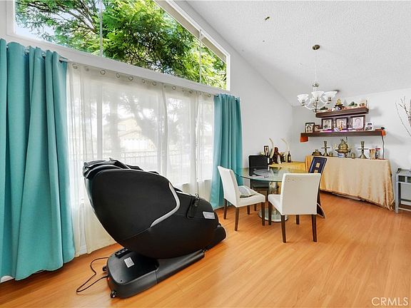 Nestled on a charming tree-lined street, this single-story home offers exceptional potential for customization, this is a fixer, bring your paint brushes! With gated RV parking and an inviting gated courtyard featuring extra-wide parking, this property greets you with a large shade tree at the entryway. Step inside to a bright living room with a cathedral ceiling, abundant windows allowing natural lighting to flow inside and highlight the wood laminate flooring throughout. The adjoining dining room, complete with custom lighting is off the kitchen, the spacious family room, where a cozy marble-tiled fireplace with a wood mantel and raised hearth creates a warm focal point, enhanced by a skytube, recessed lighting, and additional custom fixtures. The kitchen with its large breakfast bar with seating and storage, ample cabinetry, stainless steel range and dishwasher, and two semi-walk-in pantries, offering plenty of storage space. The family room's sliding door opens to the private backyard, where a wood pergola patio cover, raised brick planters, and multiple fruit trees create a perfect outdoor oasis. Enjoy an impressive selection of fruit trees, including longans, atemoya, lime, avocado, white, red, and yellow dragon fruit, Vietnamese and Australian cherimoya, juju apples, papaya, guava, kumquat, plums, lychee, and Thai lime! The private master bedroom, located at the back of the home, includes a sliding door to the backyard and an ensuite bathroom with a walk-in shower. Generous guest bedrooms feature ample closet space, while a sizable indoor laundry/utility room boasts cabinets, a folding area, and a walk-in storage pantry. The guest bathroom has been updated with designer-tiled walls, a tub/shower combo with glass doors, and stylish finishes. This property is ideally located close to parks, schools, shopping, dining, medical centers, and is just a quick drive to John Wayne Airport. Perfect for those looking to add personal touches, this cosmetic fixer is ready to be transformed into your dream home.