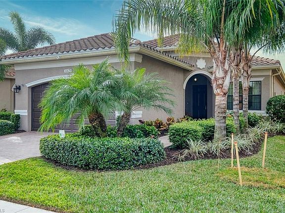 Welcome Home!! This home is ready to move into and enjoy the beautiful pool in a private setting with a lake view! There is plenty of room in this 3-bedroom plus den, two full bathrooms and a half bath home. This immaculate home has many luxury upgrades including beautiful 42" WHITE kitchen cabinets, stainless steel appliances, granite countertops, upgraded lighting, crown molding throughout, and tile on the diagonal. The separate dining room is perfect for entertaining! Many other upgrades: Tray ceilings with beautiful crown molding, accent lighting, heated pool with the salt water system...and more. Marina Bay is one of SW Florida's most desired communities with a resort style pool, tennis, pickleball, state of the art fitness center, indoor sports courts, yoga workout room, affordable HOA fees & so much more. Close proximity to shopping, medical facilities, dining, entertainment and the airport. DON'T MISS THIS ONE !!