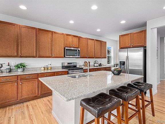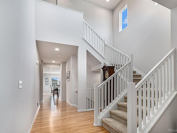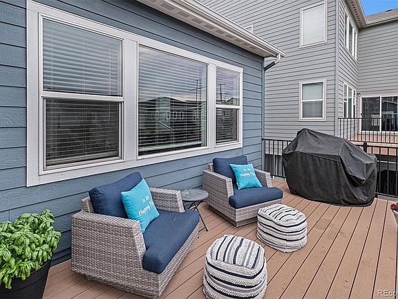 Welcome home! Walk in and fall in love with the vaulted ceiling entryway, open floor plan, and fantastic neighborhood! The main floor living area is light, bright, and airy. The heart of the home is an ideal entertaining and relaxation space. The kitchen has a beautiful island that is oversized and has plenty of space for a breakfast bar. Ample cabinet space, stainless steel appliances, pantry, and office nook make this space truly inviting. The oversized living room with picture windows and cozy gas fireplace is the ideal spot to unwind at the end of a long day and catch up on your favorite shows. Upstairs, the primary suite is spacious and private with an en-suite bathroom that offers a glass shower, dual sinks, and a walk in closet. Two additional bedrooms and laundry room round out the upper level. In your finished walk out basement, you have high ceilings that make it feel airy and bright matching the vibe of the upper levels. Great room allows for so many different uses; game room, play room, movie theater, home office, or a comibination of all the above. Oversized bedroom and 3/4 bath make an ideal guest space. Ample storage space in the basement round out the interior of the home. Outside, you'll find an oversized deck that provides plenty of room for BBQing and enjoying coffee on the deck. Terrain is located just east of downtown Castle Rock in a master planned community. Come join this vibrant neighborhood that offers 2 community pools, a dog park, tennis courts and walking trails, and a local elementary school.