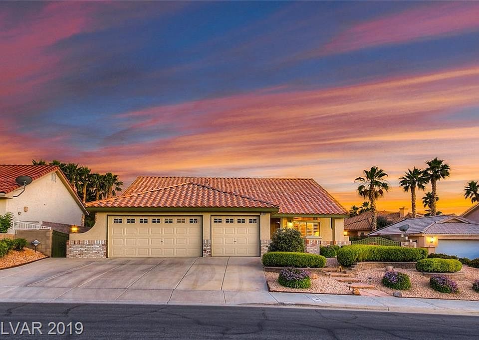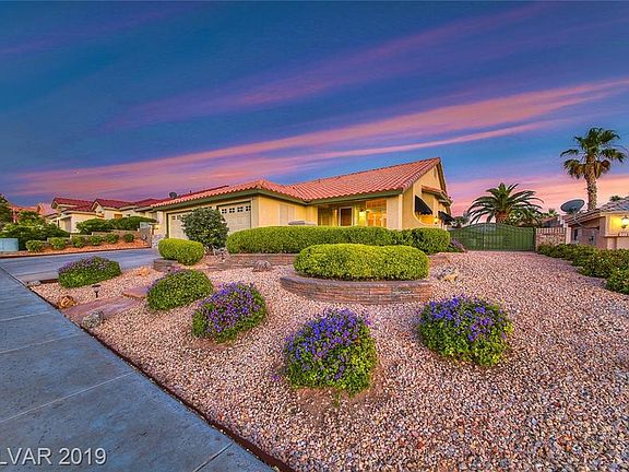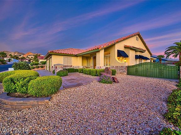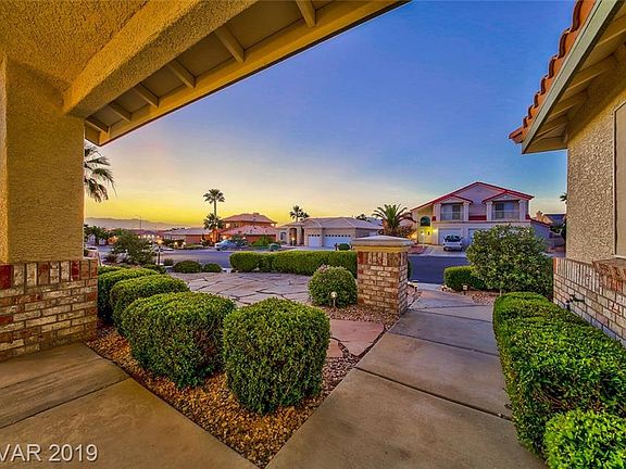 Amazing Single Story custom home in Calico Ridge with Strip view from front patio! Stunning custom front walkway,brick facade and iron gates! Interior boasts gorgeous wood flooring,over-sized base boards,crown molding,shutters & 10 ft ceilings! Kitchen features granite counters & custom white cabinetry. Sprawling master w/back yard access & en-suite. Beautifully landscaped private back yard with extended covered patio and relaxing water feature!!