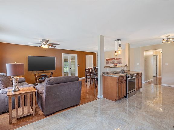 Situated on 2.03 acres in Phoenix School District, this ranch is the perfect place to call home. The kitchen boasts large, shimmering porcelain tiles and a breakfast bar that seamlessly connects to the family room and dining room combination. Additional kitchen features include, detailed wooden cabinetry, stainless steel appliances, and a spacious pantry. The family room, with beautiful hardwood flooring, extends through the 3 bedrooms. Light finishings have been tastefully updated to add a modern touch. A French door off the family room leads to a 4-season sitting room w/ a wall of windows, inviting ample natural light. Brand new windows have been installed throughout. A full laundry room leads to the primary suite, which has been built to perfection. The primary suite features vaulted pine wood ceilings and a large private bathroom that you are sure to love. One of the bedrooms includes an additional sitting room, perfect for a huge walk-in closet, office space, or even a fourth bedroom! Outside, you'll find a three-car detached garage, also in perfect condition. Did I mention new roof recently installed in March? This home truly has it all, and is absolutely MOVE IN READY!