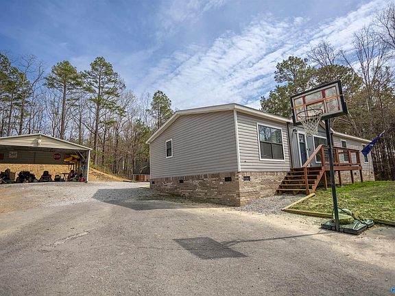 Privacy and Seclusion in Hokes Bluff School district is waiting for you at this beautiful newer home! Manufactured in 2020, this gorgeous property is situated on 2.3 acres, has a permanent foundation, 24x24 shop with power, storage building, fenced in backyard and so much more! Inside features an open floor plan with huge kitchen island with barstools, recessed lighting, vinyl flooring, additional den area, laundry room, 3 bedrooms and 2 baths. The master is large, has his and her sinks, separate shower and a walk in closet. If you prefer a little land, the wooded surroundings will make you not want to leave the peacefulness of your covered back deck!