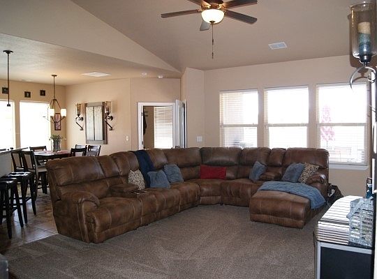 Better than new ranch with bonus room. Large open entry way, main bath has double sinks and full tile surround tub with shower. Very bright and open floor plan, vaulted ceilings, upgraded lighting, upgraded kitchen with granite counter tops, gas range, decorative pantry door. Large walk-in closet in master, 5 piece master bath with soaker tub and tile surround. Bonus room could be 5th bedroom. Large 3 car garage with epoxy floor. RV parking full length of house. Professional landscaped, great views of the Monument, in ground trampoline. Appraised for $324,900 in Sept 2016.
