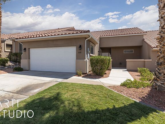 Welcome to the peaceful & private subdivision known as Summerhills in Mesquite, NV. Enjoy calm afternoons in your nicely landscaped backyard just steps away from the Arizona border line or in your front good sized courtyard. This area is known for the well kept mature landscaping. This spacious townhome has great vaulted ceilings and two skylights giving a nice, open and airy feel as soon as you enter the front door. The kitchen has great counter space with plenty of cabinet space. The good sized pantry will be found in the laundry area. ALL NEW stainless steel appliances were bought in 2021 and will be staying with the home including the washer/dryer and the water softener system. The reverse osmosis system found in the kitchen is a BONUS! You will find custom window coverings throughout the home that do great at blocking out sunlight. There is plenty of elbow space in the laundry area with a good sized folding area and a convenient utility sink. NO need to worry about cleaning at move in time.. this home was professionally cleaned including carpets! Living here will give you access to the popular Mesquite Vistas Clubhouse, which will include pool, fitness area and courts etc..