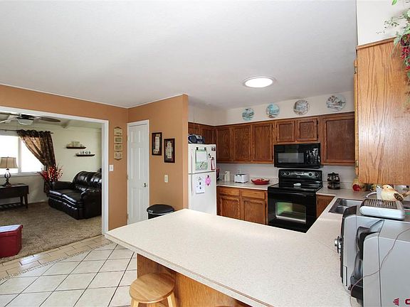 This solidly constructed bi-level home was built in 1983 and sits on a hill top within the town of Bayfield. The current owners lived in this house for 28 years and remodeled in 2002 and 2007, including the addition of a sun room and work room. A new shingle roof was installed in 2011, as well as two sky lights and two sun tunnels to open the house to natural lighting throughout. There is a vaulted ceiling in the living room and a cathedral ceiling in the sun room, which is adorned with a stained glass in the shape of a sun rise facing the south. Many interior and all exterior doors have windows to allow for natural lighting and warmth and which allow for the awesome views of the HD Mountains and a glimpse of the La Plata Mountains. Sun rises and sunsets from the two decks are awesome. The eastern deck is set up for dinner parties and can be used as an office in late spring and summer months. There is also a large patio in the back with room for a hot tub, a table and chairs for more gatherings. The lot is large and covers .64 acre and is a combination of mature landscaping and natural vegetation to include pinion & juniper trees, gamble oak, huckleberry bushes, cactus, yucca, sage brush and lupine. The developed yard includes 3 lawn areas with a courtyard in the back yard that is private and offers areas, trees, flower gardens, a vegetable garden and 2 strawberry patches. There is fencing around the back courtyard and alongside the house to provide for privacy. Another fence encloses a yard to the north of the house. There is a fire hydrant on the lot and an extra driveway on the north side of the property to allow for backyard storage and parking in the 18' x 21' x 12' carport. There is a large storage shed outside and one large storage closet inside the work room. There is a new playground across the street and it is a 5 minute walk to the Bayfield Middle School and school buses. This house has been PRE-INSPECTED (2014) and the Sellers offer a ONE-YEAR HOME WARRANTY!