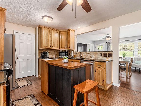 Beautifully updated ranch w/ 2040 SFLV including a partially finished walkout LL. This home has been lovingly maintained and features 1360 SFLV on 1st floor w/ additional 680 SF to the finished LL, 3 bd, 2.5 ba, 2 car att gar, 2 fireplaces-gas log & WBFP, 2nd kit in LL w/granite countertops, updated baths w/comfort height vanities and granite countertops, updated kit w/ custom hickory cabinetry, granite countertops & pantry. 1st floor laundry was in the pantry area before kitchen renovation. Half bath in LL is plumbed for a shower. The backyard adds to the appeal of this home w/ a fabulous multi-tiered deck, a firepit and a 16x24 Kayak pool, providing the perfect space for making memories with family and friends! Close to hospital and shopping.