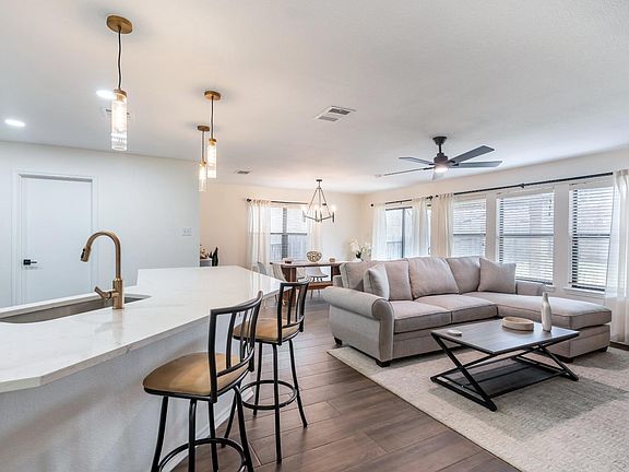 Stunning Designer Home in Prime Round Rock Location! Step into style and comfort with this beautifully remodeled 3-bedroom, 2-bathroom single-story home offering 1,742 square feet of thoughtfully designed living space. From the moment you enter, you'll be greeted by an open-concept layout with wide wood-look tile plank flooring throughout the main areas and plush carpet in the bedrooms for added comfort. The chef-inspired kitchen is a showstopper, featuring painted cabinetry, sleek quartz countertops, stainless steel appliances, stylish pendant lighting, and an expansive service counter perfect for entertaining or everyday living. Both bathrooms have been fully updated with new cabinetry and quartz countertops, elevating the home s modern aesthetic. Additional highlights include upgraded lighting fixtures, ceiling fans in each bedroom, 2 blinds with window coverings, and a spacious backyard ideal for gatherings or relaxing evenings under the stars. For added convenience, a refrigerator, washer, and dryer are included in the lease. Located just minutes from top-rated schools, Dell Diamond, Kalahari Resort, and major employers, this home blends style, function, and location. Available furnished at a premium rate. Don't miss your chance to live in this turnkey designer home schedule your tour today!