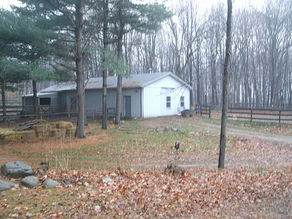 Beautiful 2000 sqft Cape Cod on over 9 acres. The best of both worlds with this lovely home. Enjoy the serenity of the outdoors on the wooded property taking nature walks or the abundance of wild life for the hunting enthusiasts. Horse lovers paradise boasts a 40X30 horse barn with 24X24 addition. 3-separate paddocks off the barn, and 2 paddocks in the front with a 10x10 lean-to, 6-12x12 stalls, 60' Round arena 60 x 80 fenced riding area. This lovely 3 Bedroom 2 1/2 baths has hardwood floors, large kitchen with island, breakfast bar and dining area. Formal dining or sitting room has breath-taking views of nature in all its glory. Natural light floods this home in warmth and tranquility. Updates include New windows 2019, new roof 2016, new hot water tank 2017, new furnace in 2014, and automatic whole house generator in 2013. Barn has water and electric.