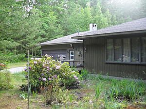 8 Acres,2 bedroom,1.5 bath w/fireplace.First bedroom (11.4 x 16)attached screen-in porch(7.2x15.3) w/9ft slider dbl pane,good size closet, carpet.Master bedroom (15.8x13)his/her closet,bath(7.4x8)built-in linen closet,tile floor,tub,one sink.Living room(15x23.4)with picture window(10x5)5 panels w/screens,fireplace(8.7x5.3)slate stone.Kitchen(13.8x16)includes dining room,older Jennair cookstove,cupboards are hardwood in great condition dark stain,carpet,wall built-in microwave.Laundry/mudd/pantry room upon back door entry,with half bath next door.Home is ready for your taste,its original,waiting for new owners. Great secluded feel,and wildlife.