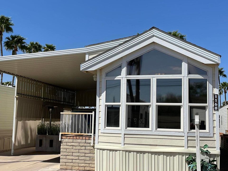 Looking for a stunning new park model in Roadhaven Resort, look no further! This 2006 Cavco home is great inside and out. Beautiful cabinets, light and bright tall ceilings and mountain views. The outside boast a private little seating area and covered parking. Nice size shed with matching side keeps this home well up to date and easy to show. Home will come furnished including a golf cart with a full priced offer.