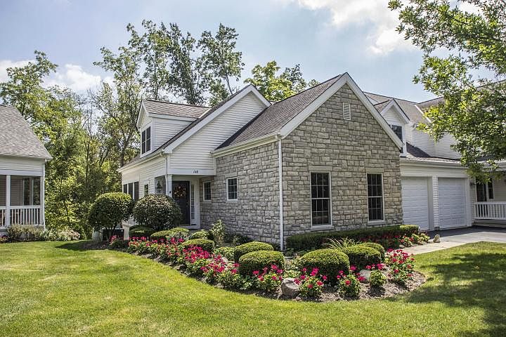 Spectacular and bright, end unit in gated community with clubhouse and pool, scenic view of woods/ravine, hardwood floors in entry and kitchen and powder room, first floor owners' suite, high-efficiency furnace and air/cond, first floor laundry, attached two car garage, lower level 36 ft family room with wet bar, 19x12 bedroom down with full bath, peaceful screened porch and walk-out door to patio