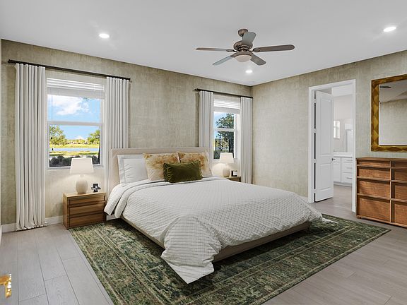 Rare Waterfront Corner Lot (lake views from kitchen, living room and primary bedroom)! This beautifully renovated Holly Model comes with 5 bedrooms (can add 6th) and 3.5 bathrooms in the brand new and family-friendly community of Arden. Perfectly positioned on a spacious corner lot by the lake and the walking trail, this home boasts after-build upgrades and breathtaking deep lake views from Sunrise to Sunset. The oversized lot provides endless possibilities -- design the backyard oasis of your dreams, add a pool, outdoor kitchen, or a custom playground. Use the existing design plans or make it your own - our Professional Interior Design is happy to assist.