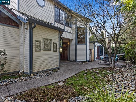 Location! Location! Location! Minutes from downtown Pleasanton. Come home to this beautiful two story townhome. Relax in the outdoor hot tub with a private serene setting. Closet in third bedroom is opened up and can easily be added. Currently being used as a home office. Kitchen features granite counter with NEW stainless steel refrigerator, stove and dishwasher with an eat in kitchen. Lovely formal dining room. Living room has vaulted ceilings with built in shelving surrounding the fireplace. Large Primary bedroom suite features an extra sitting area and walk in closet. Bathrooms have been beautifully updated. This one is a gem!!