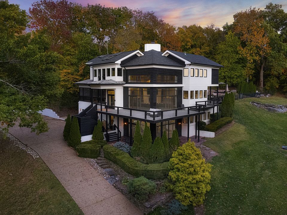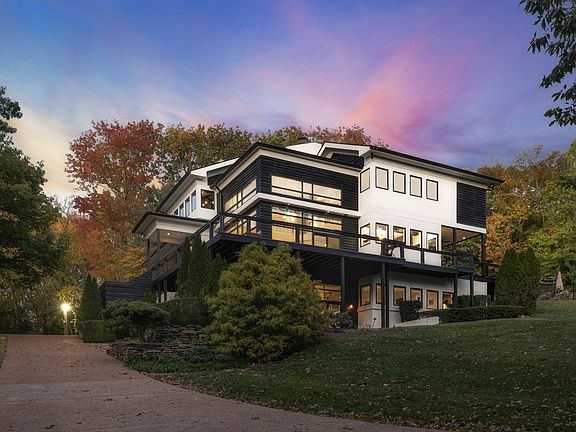 This luxury modern retreat is on nearly 5 private acres w/a secluded circle driveway. This one of a kind property has an open floor plan with high ceilings & walls of windows bringing in natural light & offering beautiful views. The home encompasses a spacious LR w/a double sided fireplace as the focal point, formal dining near the large screened-in patio, basement gym, wet bar & office to name a few. The beautiful kitchen exhibits a Thermador fridge & range w/eye-catching backsplash plus an island & add. counter seating. 3 bedrooms on 2nd floor includ. primary. The outdoor oasis includes a 3 tiered pool/spa w/multiple waterfall features & surrounded by plush landscaping/spacious outdoor living & entertaining space. The wrap around porch is perfect for enjoying the beautiful sunset views.