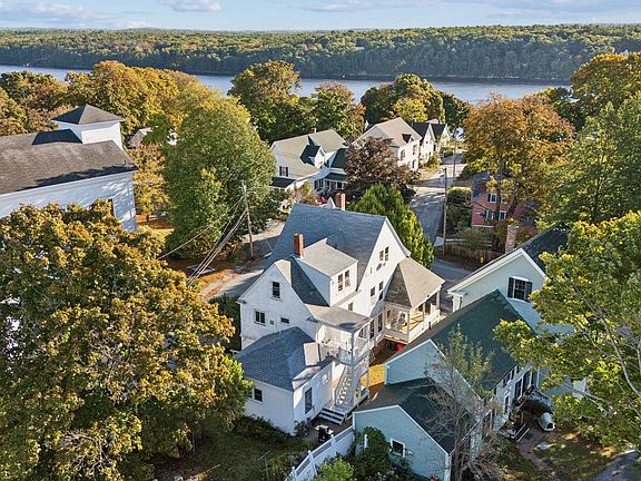 Located on a fantastic street in Bath's North End, near Downtown and the Kennebec River boat launch, this rare four-unit property showcases turn-of-the-century architecture with abundant character. Each of the four apartments—two 2-bedroom units and two 1-bedroom units—features a private porch area with its own entrance.