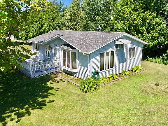 Beautiful location at the end of the road! This 2 bedroom, 1.5 bath home is well maintained and comes with 100 feet of shore frontage on Lake Michigan. Enjoy the beautiful water views and harbor from your front deck. A home like this with the water access and views is hard to find. Large concrete pier and close to Sand Bay beach. Currently used as a vacation rental with a good rental history. Come and take a look.