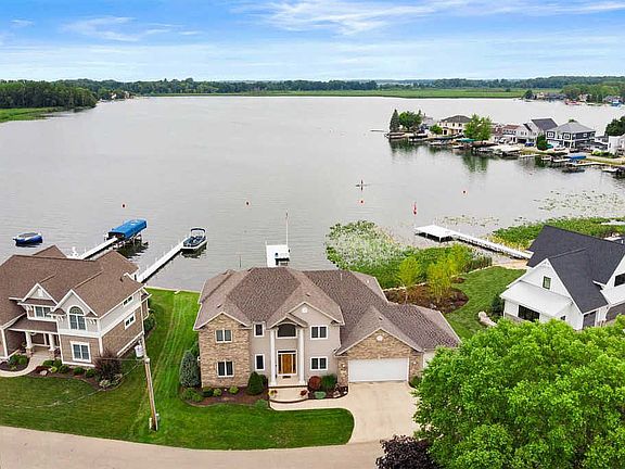 Stunning one owner home w/ 80â of lakefront & 40â of channel frontage on Lake Wawasee! This impeccably maintained 4 bed, 2.5 bath custom built home boasts 3,093 sq ft of well appointed space. Located on the very private & prestigious Ogden Island & facing Johnson Bay, youâll enjoy the serenity & quiet of no outlet drive w/ no through traffic & amazing waterfront views! Included is a pier on both the lake & channel, hot tub & even a doggy door & run perfect for your furry friend. Enjoy gorgeous water views from almost every room in the house from multiple 2 story windows. Exterior looks sharp & maintenance is a breeze w/ irrigation system that pulls from channel side of lake; oversized 3-car garage w/ extra workshop area (drains) & attic storage. Inside the 2-story covered front entry w/ sidelights &transom windows youâll be blown away by giant open living/family/dining space w/ TONS of windows facing the water. Connected to open, modern & updated eat-in kitchen w/ breakfast bar featuring lovely cherry cabinets, new SS appliances, backsplash & double ovens. LARGE rec room starring wet bar, fireplace & panoramic windowsâideal for entertaining or simply chilling w/ the family. Master includes luxurious en suite w/ double vanity, large soaking tub & walk-in shower &closet. All bedrooms are sizable w/ ample storage throughout. Entire home has been wired for sound. Generous lakeside patio is the ultimate spot for relaxing, dining alfresco, catching some rays or enjoying a nice soak or splash. Are you looking for a 2nd vacation home? Professional living or entertaining space? Or simply want to take advantage of lake living? This could be your dream home! Johnson Bay is wonderful for knee boarding, skiing, etc & Lake Wawasee is an all sports lake w/ year round activities & amenities. Nearby golf club & wetlands conservation area provide extra activities & there are plenty of waterfront dining options to choose from. Donât let this one slip away!