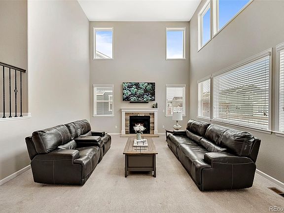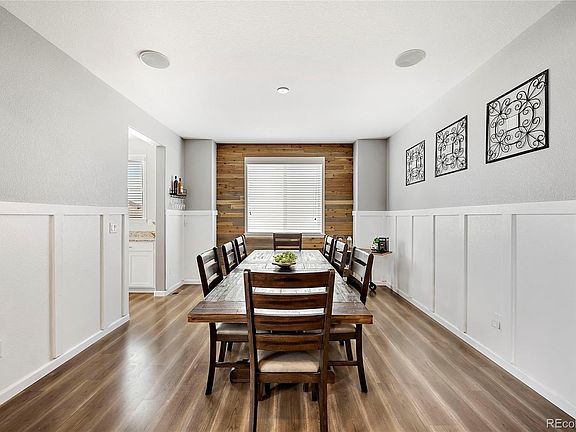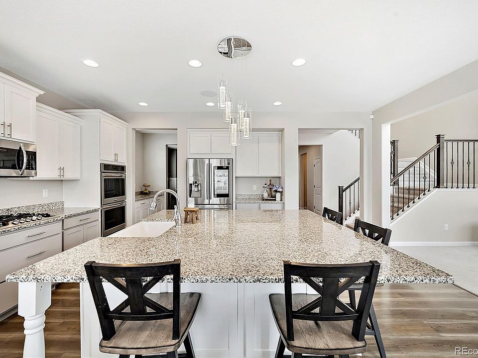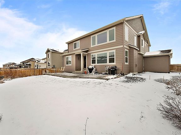 Why buy new when you can have this beautiful home in the Villages of Buffalo Run. This four bedroom plus an office with three baths has been upgraded throughout. The kitchen is a chef's dreams with designer white and grey cabinets, upgraded appliances and an oversized granite island. It is just perfect for a gathering with a butler's pantry alongside an oversized separate pantry. Garage lovers will swoon on the oversized 4 bay! That's right, a 4 bay GARAGE. Notice the mudroom with custom Vaulted ceilings allow the natural light to fill the open concept main floor. Work from home in your private office. Dinner parties will be a hit in your dining room with custom wood accents and wainscoted walls. A beautiful wrought iron staircase leads you to the upper level. The primary suite is spacious with a luxurious bath that includes white subway tiles, sitting make-up station, oversized shower, relaxing soaking tub and dual vanities. The closet is one that a fashion lover would be proud of with plenty of space. Laundry is a breeze in its room that is conveniently accessed through the primary bedroom and hallway. Three generously sized guest bedrooms and a full bath complete the upper level. The full basement has several egress windows to let in natural light and can be easily finished to become an over 4,500 sq ft home or used for storage. Enjoy the Colorado outdoors year round on your back patio with a fully fenced yard. Centrally located, with easy access to multiple highways, dining, shopping and to the airport. This gem of a home is ready for you to simply move in and enjoy!