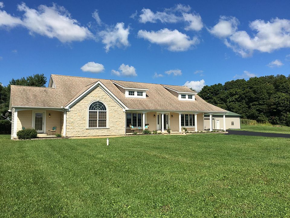 Spectacular home located on a short road surrounded by woods & farmland. This home has everything to offer! 6 brs 4 ba over 5000' of living space! Walk up lower level, Stocked Pond, 30x48 pole barn for the man of the house. Serious open concept!! Cherry kitchen cabinets, huge kitchen with massive breakfast bar seats 7, kitchen backsplash, ss appliances, walk in pantry, floor to ceiling stone wood log burning fireplace, wrap around porch, additional porch off master bath, 12x12 tiled master bath with deco tile, Jacuzzi tub, large 2 headed shower, separate make up area, 2 walk in closets, Jack n Jill bath between 2 large brs on 1st level, 3brs on lower level, one with walk in closet, Great room and rec room in lower level, One of the finest homes in the area secluded paradise could be yours!