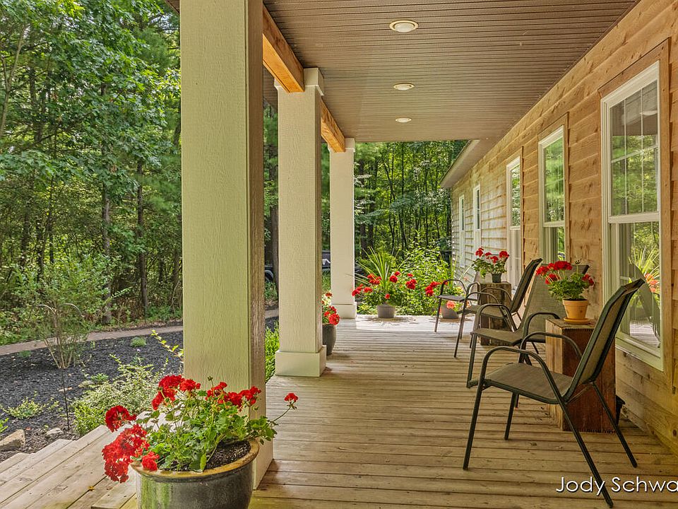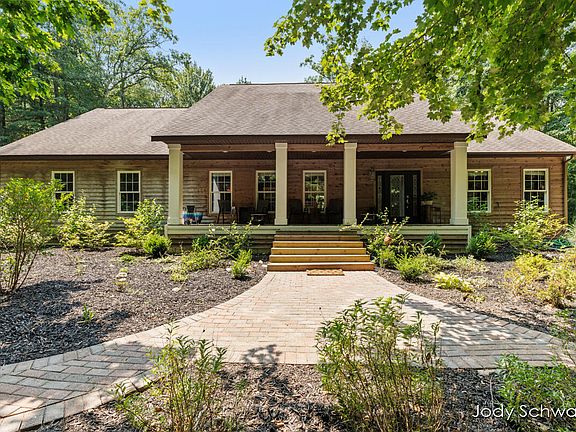 Spacious and private; this 5 bedroom, 3.5-bath ranch is nestled on 5 wooded acres and clad in beautiful cedar siding. The main floor is open concept with an expansive kitchen featuring quartz countertops and solid oak cabinets to delight any cook. The primary suite is massive with a spa-like bathroom, cathedral ceiling, and french doors to the outside, providing the perfect escape for relaxation. Enjoy geothermal heating and central air, delivering efficient and eco-friendly climate control, a convenient main floor laundry, and a 2-stall attached, insulated garage. The lower level offers 2 new large bedrooms, a new bathroom, and the opportunity to finish an additional 1200 sq feet in the walkout area, This home is ideal for those seeking privacy, ample living space, and convenience.