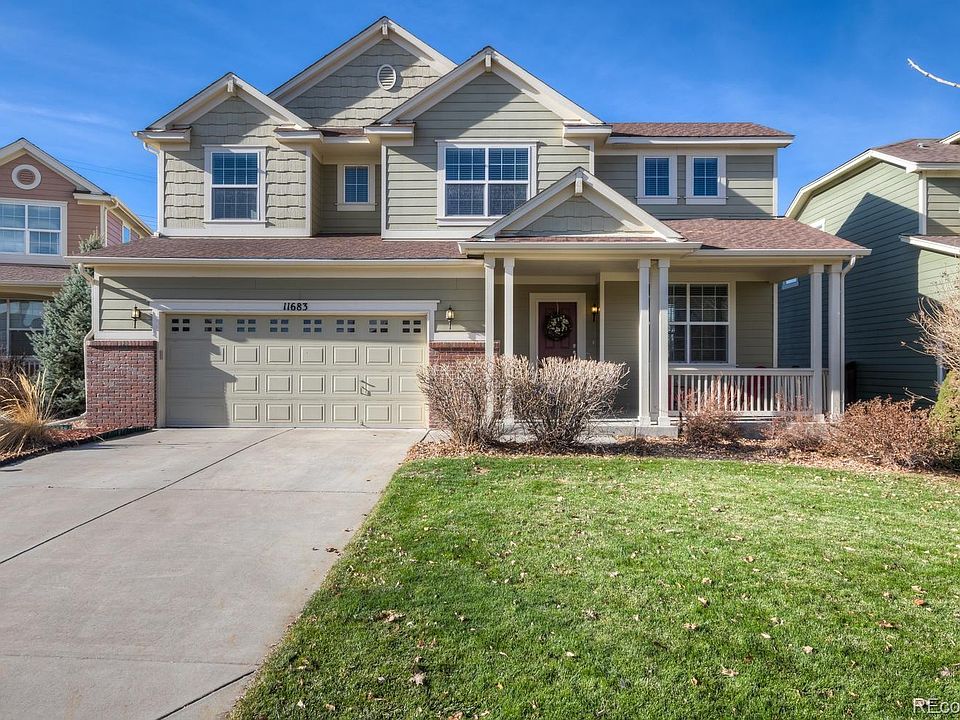 Welcome to this beautiful home. Vaulted ceilings and lots of windows make this home light and bright. Gourmet kitchen with slab granite counters, cherry cabinets and double oven. Kitchen opens up to large family room with gas fireplace. Office and formal dining also on the main floor. Backs to open space with a great deck facing west to catch the beautiful Colorado sunsets. Additional private deck on side of the home. Large Master bedroom with coffered ceiling, huge walk in closet and luxurious 5 piece Master bath with spacious walk in shower. Nice sized bedrooms upstairs with full bath, laundry room with sink and an inviting loft overlooking the great room. Finished walkout basement including bedroom and full bath. Brand new carpet throughout. New hot water heater, 2 HVAC systems with high efficiency furnace. 3 car garage. Easy access to I25, 470, Cherry Creek Trail and the Light-rail. Great schools and nearby parks.