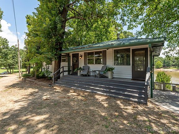 Lakefront Retreat with Private Boat Slip & Sandy Beach – Fully Furnished! Perched atop a scenic hill with panoramic views of stunning Lake Eufaula, this fully furnished lakefront getaway is the perfect blend of comfort, charm, and adventure. Whether you're looking for a serene personal retreat or an income-producing vacation rental, this home checks every box. Inside, the primary bedroom offers a peaceful escape, while the secondary bedroom includes both a full bed and a bunk bed – perfect for guests or family. A foldout couch in the cozy living room provides additional sleeping space, making this home ideal for hosting. You’ll find one full bathroom and a convenient half bath with an in-unit washer and dryer for added ease. The spacious dining room and full kitchen make mealtime a breeze, and the charming gas stove brings a warm, rustic ambiance to your evenings. Just off the living room, the screened-in porch invites you to relax and take in unbeatable lake views with your morning coffee or evening wine. Step outside and discover an entertainer’s paradise – four levels of expansive decking cascade down to your very own sandy beach and private boat slip. Whether you're hosting a barbecue, soaking up the sun, or simply watching the water sparkle below, this outdoor setup is made for memories. Lake Eufaula offers year-round fun for all ages: boating, fishing, paddleboarding, kayaking, swimming, and jet skiing are just steps away. Explore nearby trails, enjoy waterfront dining, or drop anchor at one of the lake’s many coves. Don’t miss this rare opportunity to own a fully furnished lakefront home with unbeatable views and direct access to Oklahoma’s largest lake. Turn the key and start living the lake life today!