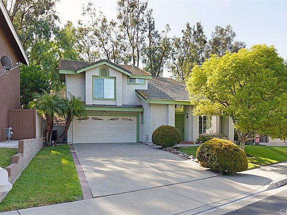 Fantastic single family residence in guard gated Green River! This 3 bedroom, 2.5 bathroom home features a modern and neutral paint scheme, recessed lighting, along with crown molding and wood laminate floors across the downstairs area. Soaring ceilings and large windows at the living room and entry provide an abundance of light - great vibes! Open concept floorplan leads to the dining area with a fireplace and flows nicely into the kitchen. Kitchen and dining area offer up easy access to the backyard, great for entertaining. The first floor also has a recently remodeled guest bathroom with newer tiles and vanity. All three bedrooms are upstairs, led by a spacious master suite with vaulted ceilings. Home sits on a generously sized 6,000+sf lot with covered rear patio and high end artificial turf on the side yard. 2-car garage with extra long driveway that can fit up to 4 cars! Tucked away in the foothills of Corona and ideally located minutes from Orange County, the Green River community is low on HOA dues ($175/mo) but not on amenities. Some of these include: swimming pool and spa, BBQ area, two racquetball courts, tennis and basketball court, enclosed dog park, playground and clubhouse. **3D tour available under details**