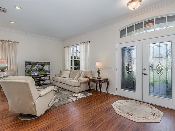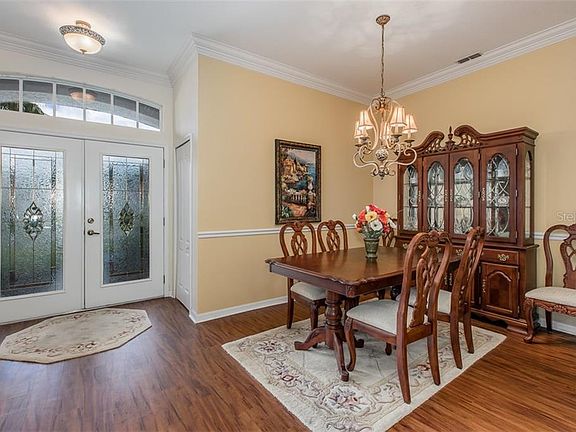 LOCATED IN THE UPSCALE, gated, age-restricted (55+) community of Wellington at Seven Hills, 45 minutes from Tampa Int'l airport. Beautiful 4-bed, 3-baths, 3-car garage & enclosed lanai (approx. 20 x 20). Landscaping, epoxy drive, gutters, & downspouts. Freshly painted exterior. Double door leaded glass entry, formal living/dining room, opens to family room/kitchen, & cozy breakfast nook. Crown molding throughout, no carpeting. (wood look vinyl, laminate wood, composite tile) 42'' cabinets-under cabinet lighting, pullouts. Pendant lights, tray ceiling, beautiful granite counters w/breakfast bar, back splash, & Stainless-Steel Appliances. Three baths w/elevated vanities, Corian countertops. Mstr bdrm w/tray ceiling, sliders to lanai, walk in & reach in closets. Mstr-bath w/relaxing soaking tub, walk in shower, dual elevated vanities, & private commode room. A triple-split floorplan. 2 guest rooms & bath, & third guest bedroom w/bath (access to enclosed lanai). Inside laundry w/cabinets, Spacious garage- A/C 2016. Guard attending front gate 24/7. Bar & Grill offer friendly staff & delicious dining overlooks heated pool & spa. On-site fitness, billiards, tennis, bocce, library, & more. Community following CDC standards, allowing residents to safely enjoy social events, clubs, classes, etc. Near Tampa, Gulf of Mexico, & Orlando & dozens of day trip. Due to the pandemic masks required & 3-person limit. Disposable booties, sanitizer, & gloves are provided at front entry. Thank you.