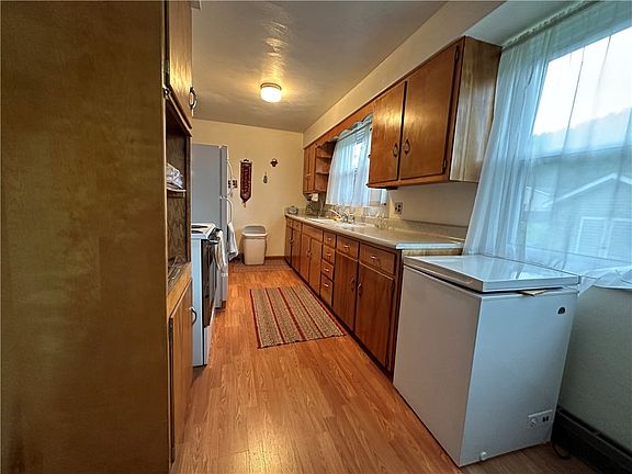 Hard to find brick ranch on just under a half acre. This home is currently set up for one floor living. There are 3 bedrooms, one is currently set up to be the laundry room, there are laundry hookups in the basement as well. Home has a galley kitchen and a large living room. There is a one car attached garage with a raised enclosed breezeway into the home. There is a large concrete covered front porch as well as a smaller covered back porch. This home has updated roof, windows, furnace and air-conditioning.