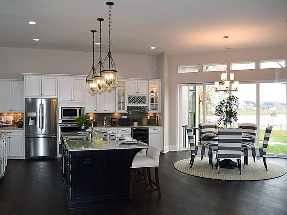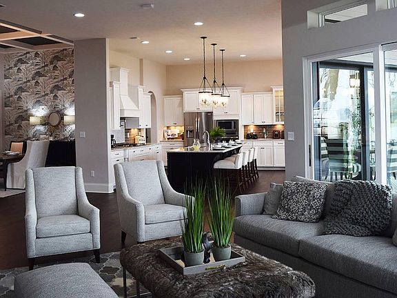 3 bedroom, 2 ½ bath, Great Room with fireplace, Expansive Kitchen with Large Island, Hearth Room, 2 Flexible Rooms to Serve as Living or Dining Room, or Bedroom, Den/Office, Master Suite with round sitting area, and with Garden Bath, Large Laundry Room and Mud Room, Optional Covered Porch, Screened Porch, Sun Room, 2-Car Side Loading Garage, Optional 3-Car GarageAs you enter The Falcon through a spectacular arched entrance, you walk right into the heart of the home, with stunning views of the lake through a wall of windows in the Great Room. pend your afternoons watching the sunlight dance across the lake through rows of majestic glass, or savor your evenings on the couch, watching the shifting glow of a fire. To the side, the large kitchen overlooks the Hearth Room and the Great Room. Equipped with a large pantry and top-line appliances, the kitchen offers an ideal space for those who love to explore the culinary arts and entertain friends and family. After the party's over, wash away the day in your beautiful master bathroom which features a double-sink vanity and two large walk-in closets. The adjacent master bedroom suite offers bountiful space along with a separate sitting room for even more privacy. Three additional bedrooms, a flex room, and a bathroom are located near the front foyer.A large, modern laundry room, mud room, and a three-car garage complete this magnificent ranch home.