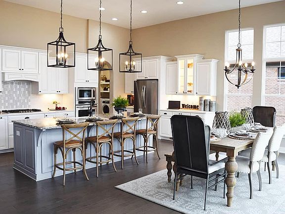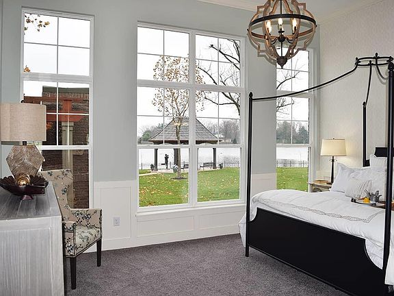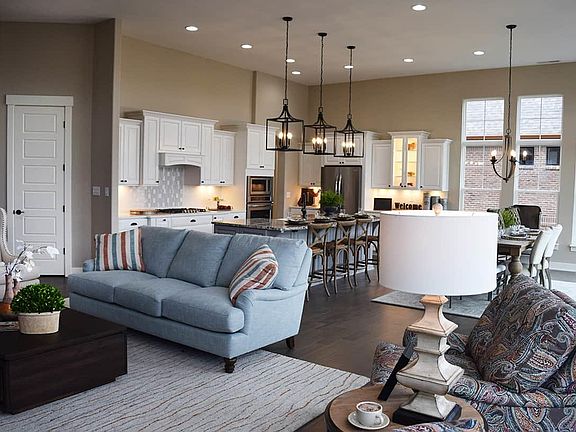 3 bedroom, 2 ½ bath, Great Room with fireplace, Expansive Kitchen with Large Island, Hearth Room, Flexible Room to Serve as Living or Dining Room, or Bedroom, Den/Office, Master Suite, Large Laundry Room and Mud Room, Optional Covered Porch, Screened Porch, Sun Room, 2-Car Side Loading Garage, Optional 3-Car GarageThis cozy ranch serves as the perfect home for a couple ready to downsize into something more comfortable. The three-bedroom Hawk design delivers a simple but sophisticated living space with a variety of options and amenities that will help you build your ideal home. The Hawk offers a range of elegant features, including a huge Great Room with fireplace, optional bookcases, and ceiling-to-floor windows that provide a stunning view of the lake.The spacious kitchen with a large island counter and walk-in pantry overlook the Great Room and the Hearth Room, which provides additional private space in the heart of the home. Choose from a variety of flooring, tile, and cabinetry to create the perfect place to cook and entertain friends. On the other side of the home, the master suite provides privacy and ample space in the bedroom. The adjoining master bathroom includes a wide double-sink vanity and two walk-in closets.As with the other models, you can choose to include a loft for even more space, a three-car garage, and a finished daylight or walkout basement. A big laundry room, useful mud room, and half bath also are in this lovely ranch design.