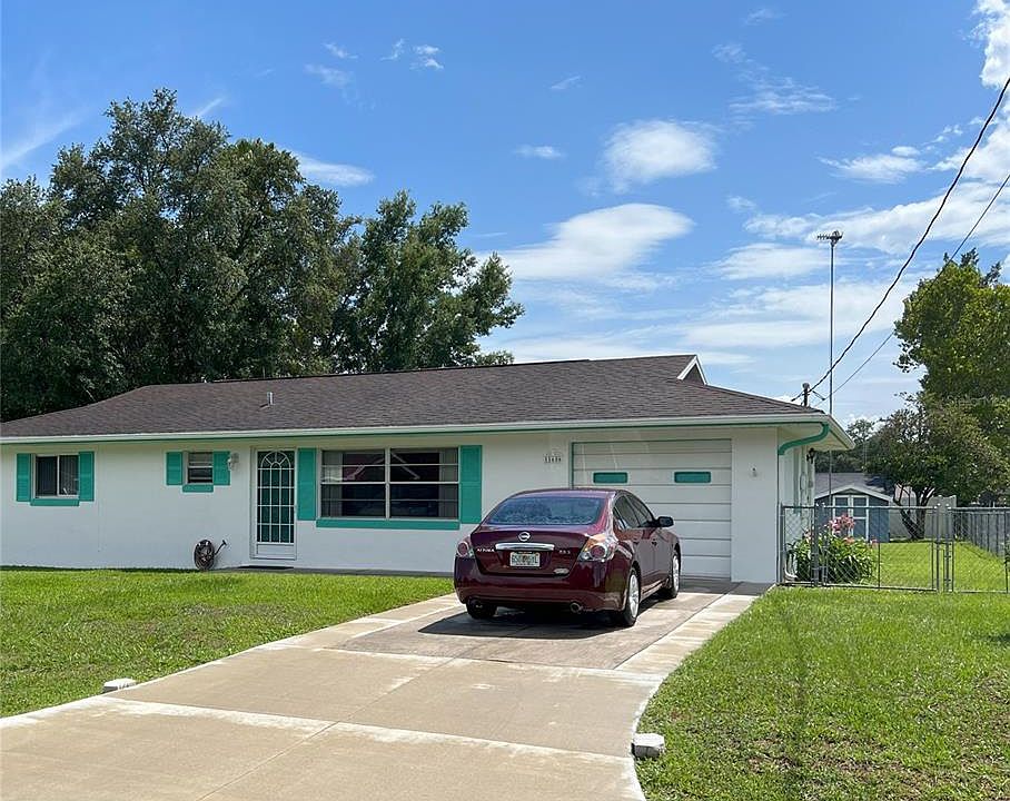 Come see this extremely well maintained 2/2 residential home in a quiet neighborhood that offers offers space and excellent location! The living room is spacious and leads to a dining room and nearby kitchen. There is a nice enclosed screened lanai that is off the kitchen and dining room that faces well landscaped backyard. This home sits on a 1/4 acre and the entire backyard is fenced with a double gate for vehicle entry. Well and septic has been serviced regularly. It is durable concrete block construction with a stucco exterior. The roof is only 9 years old. The garage also includes an area for laundry that leads to the kitchen. This is a great residential living just off Hwy 441, just minutes from Marion Market and conveniently located between Ocala and The Villages for shopping and more. Schedule a showing today!